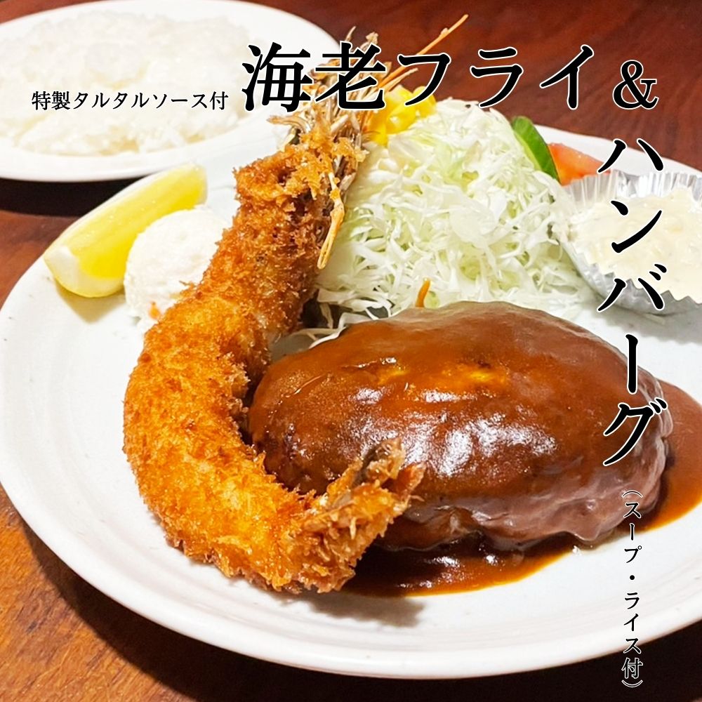 ・海老フライ&ハンバーグ(スープ・ライス付) ¥1,780